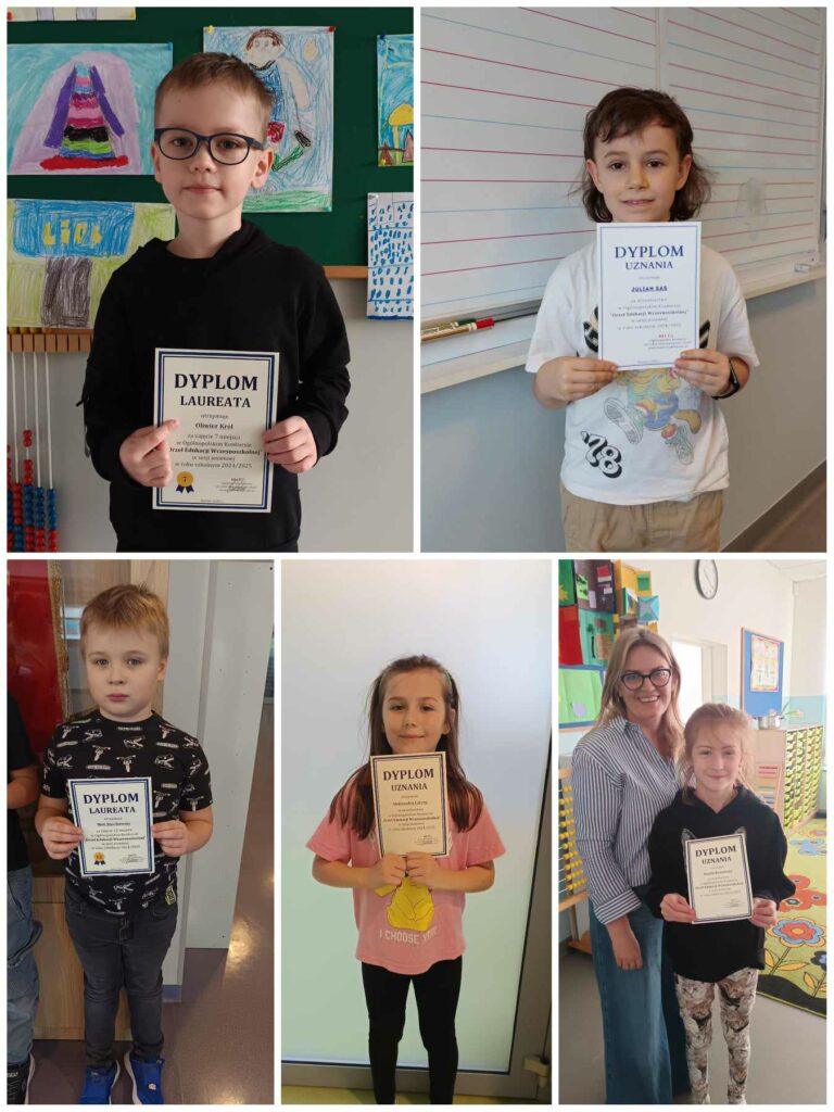 W dniach 12-13 marca br. w naszej szkole odbyło się wręczenie pamiątkowych dyplomów dla uczestników oraz laureatów Ogólnopolskiego Konkursu „Orzeł Edukacji Wczesnoszkolnej” dla klas I-III. Z dumą informujemy, że nasi uczniowie osiągnęli wysokie wyniki, a nasza szkoła otrzymała od organizatora certyfikat placówki rozwijającej talenty. Serdecznie gratulujemy wszystkim uczestnikom i życzymy powodzenia w kolejnych konkursach!