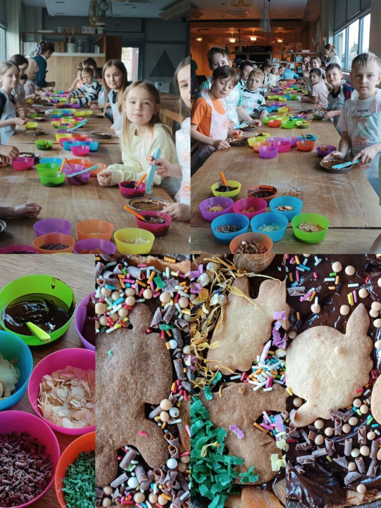 8 kwietnia br. uczniowie klasy 2D odwiedzili piekarnię „Grzybki”, gdzie uczestniczyli w warsztatach Akademii Piekarza. Celem wizyty było poszerzenie wiedzy na temat historii, produkcji i spożycia pieczywa. Dzieci miały okazję poznać proces powstawania pieczywa, a także samodzielnie wyrabiały ciasto i ozdabiały wielkanocne mazurki. Była to nie tylko edukacyjna, ale także bardzo kreatywna przygoda, która na długo pozostanie w pamięci uczniów. 🐣