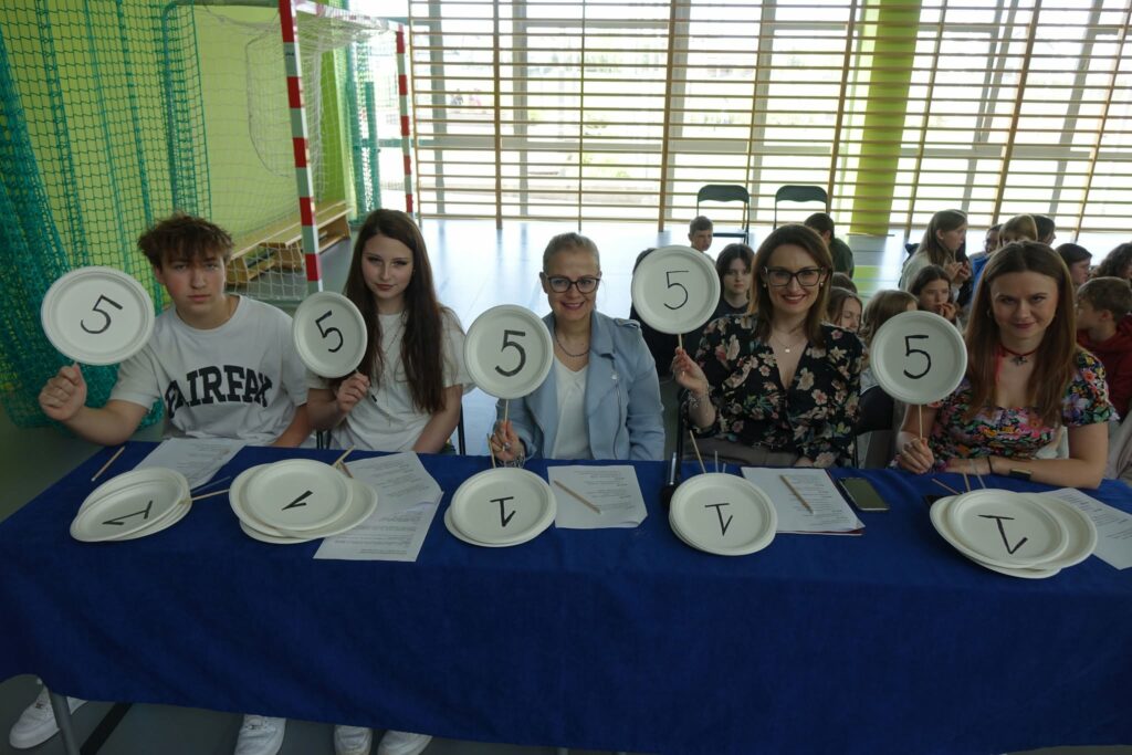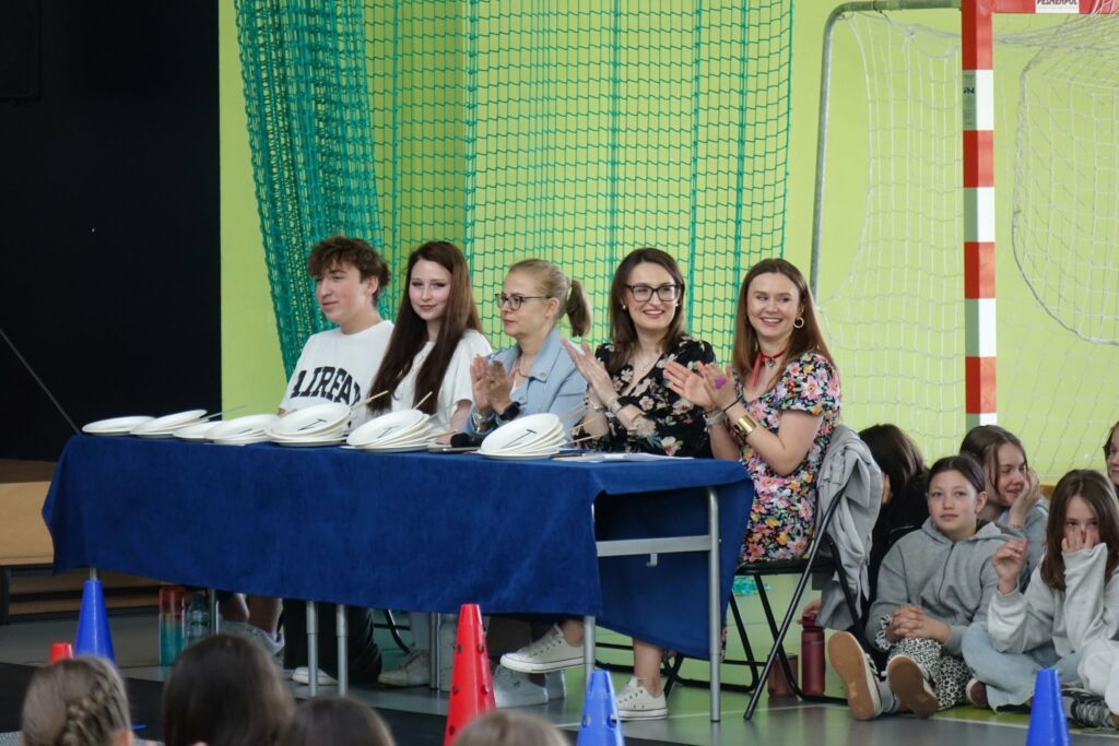 Po zakończeniu pokazu nagrody rzeczowe – ufundowane przez Radę Rodziców – wręczyła Wicedyrektor Szkoły, Pani Grażyna Pietrak, wraz z koordynatorem wydarzenia i przewodniczącą jury.