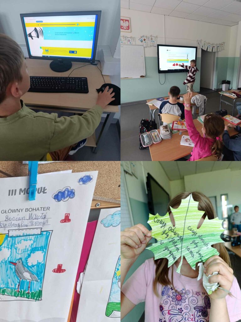 W ramach modułu uczniowie przeczytali lekturę „Kapelusz Pani Wrony”, po której wypełnili lekturniki i wykonali kreatywne prace w formie lektury na wieszaku. Następnie sięgnęli po kolejną książkę – „Niesamowite przygody dziesięciu skarpetek” – i przygotowali lektury w pudełku, w których umieścili przedmioty symbolizujące przygody bohaterów.