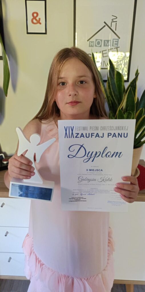 Z radością informujemy, że Gabriela Kulik, uczennica klasy 4c, zajęła II miejsce na XIX Festiwalu Pieśni Chrześcijańskiej „Zaufaj Panu” w II kategorii wiekowej.