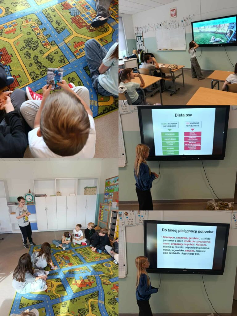 Podczas zajęć uczniowie odpowiadali na pytania kolegów, dzieląc się ciekawostkami i doświadczeniami związanymi z opieką nad zwierzętami. Część klasy wzięła udział w wyjątkowym modelu odwróconej lekcji – tym razem to uczniowie wcielili się w rolę nauczycieli i ekspertów w dziedzinie, która jest im szczególnie bliska.Wspaniałe historie i prezentacje udowodniły, jak ważną rolę w naszym życiu odgrywają nasi czworonożni (i nie tylko!) przyjaciele.