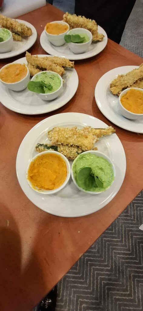 Hania przygotowała stripsy z cukinii z dipami: dyniowym i szpinakowym, natomiast Bartek zachwycił jury pieczonymi półksiężycami z dyni i cukinią z dipem szpinakowym.
