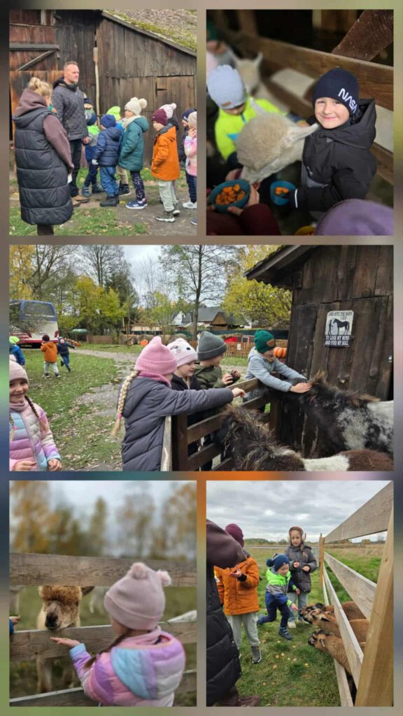 27 października br. klasa 1d wybrała się na jesienną wycieczkę integracyjną do gospodarstwa agroturystycznego Alpaki-Tulaki. Dzieci poznały zwyczaje alpak, mogły je przytulać i karmić, a także zaprzyjaźnić się z innymi zwierzętami — owcami, koziołkami i kucykami. Dowiedziały się również, w jakim celu hoduje się alpaki. Podczas warsztatów każdy uczeń własnoręcznie wykonał i ozdobił drewnianą alpakę, którą zabrał na pamiątkę. Piękna, słoneczna pogoda tylko dodała uroku całemu wyjazdowi. Uczniowie wrócili pełni wrażeń, uśmiechów i jesiennej energii!