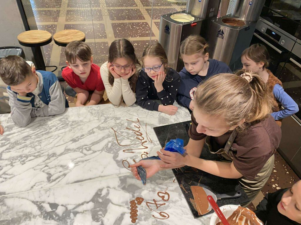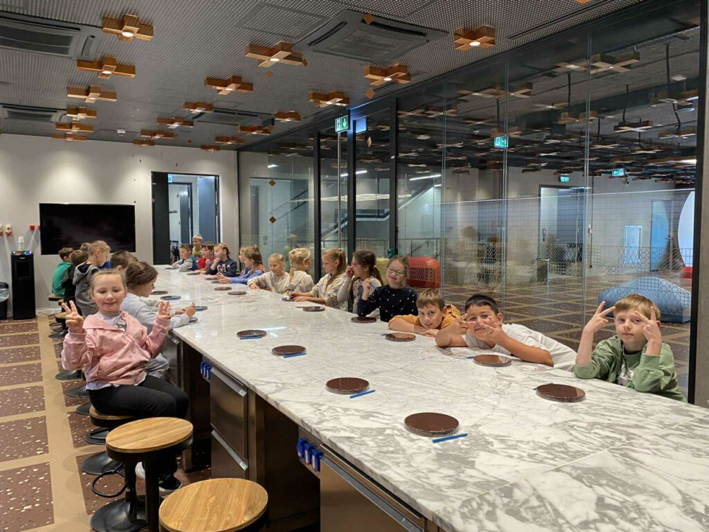 Uczniowie klasy 2B odwiedzili Fabrykę Czekolady E. Wedla w Warszawie. Podczas wizyty uczniowie poznali kolejne etapy produkcji czekolady – od ziarna kakaowca aż po gotową tabliczkę. Dzieci miały okazję spróbować różnych rodzajów czekolady oraz wziąć udział w warsztatach dekorowania torcika wedlowskiego. Własnoręcznie ozdobione słodkości wyglądały i smakowały wyśmienicie! 😋 To była niezwykle słodka i pouczająca wycieczka, pełna radości i czekoladowych wrażeń! 🍫