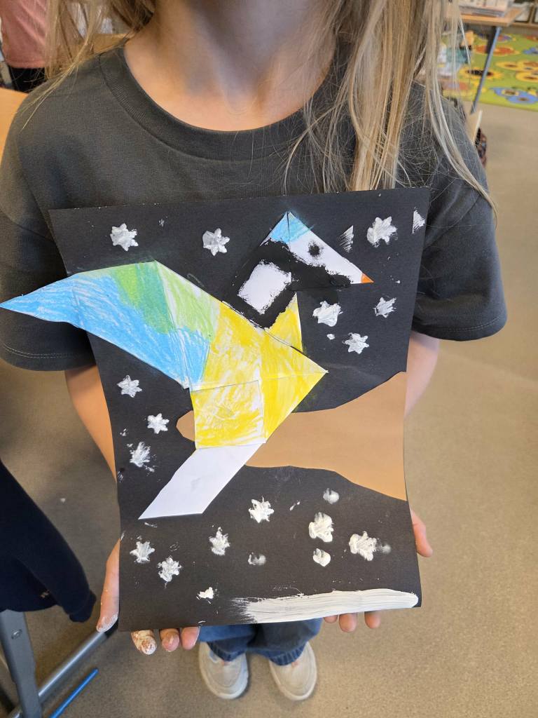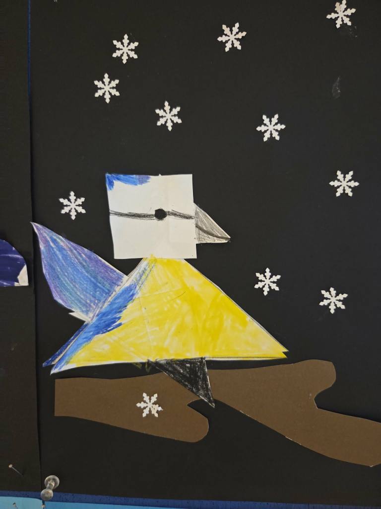– Matematyka – tworzenie ptaków z tangramów, połączenie geometrii i kreatywności.