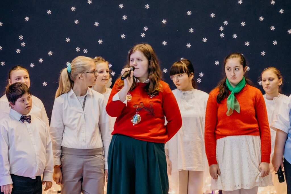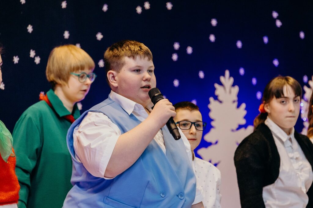 Na pięknie udekorowanej scenie, która swoim świątecznym klimatem wprowadziła wszystkich w wyjątkowy nastrój, wybrzmiały pełne ciepła kolędy i pastorałki. Atmosfera radości, wzruszenia i wspólnego przeżywania świąt wypełniła całą salę gimnastyczną.