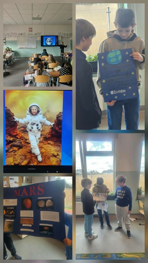 Dzieci z dużym zaangażowaniem prezentowały wybrane planety, wykorzystując różne formy – od kolorowych plakatów po prezentacje multimedialne. Była to nie tylko lekcja przyrody, ale także świetny trening wystąpień publicznych!